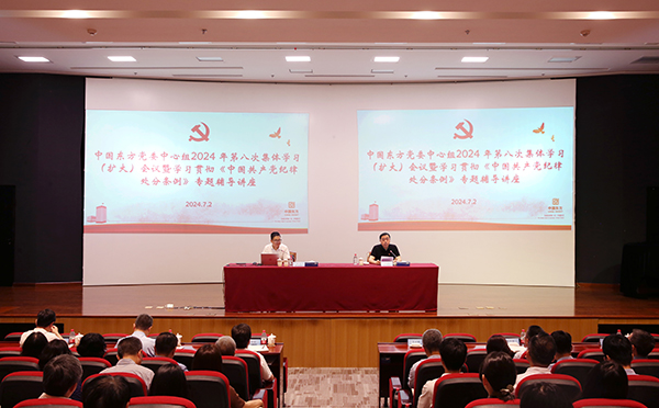 2024年7月2日,為深入推進(jìn)黨紀(jì)學(xué)習(xí)教育,中國東方召開黨委理論學(xué)習(xí)中心組2024年第八次集體學(xué)習(xí)(擴(kuò)大)會議,邀請中國紀(jì)檢監(jiān)察學(xué)院副研究員陽平圍繞學(xué)習(xí)貫徹《中國共產(chǎn)黨紀(jì)律處分條例》,為公司系統(tǒng)黨員干部作專題輔導(dǎo)講座。中國東方黨委書記、董事長王占峰主持會議并講話,公司黨委委員、總裁助理、首席信息官出席會議。